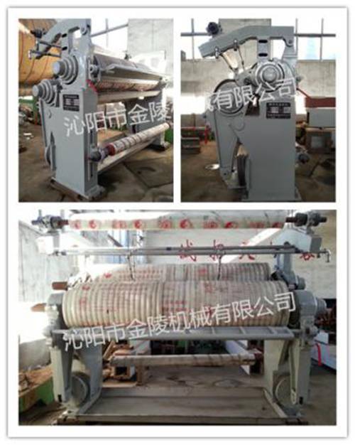 施膠機有鍍鉻輥、橡膠輥、引紙輥、進膠管、刮刀裝置、擋膠裝置和氣動加壓裝置等組成。在施膠輥上方配有進膠管,向兩輥之間供膠,進膠量有進膠管前的閥門控制,在施膠輥的兩端面設有可調整壓力的擋膠板,以防止膠液向輥面兩側流走,保持多余膠液流淌在施膠輥下面的接膠盤中。刮刀裝置作引紙剝紙用,一般正常生產(chǎn)時應抬起刮刀,以延長施膠輥的使用壽命